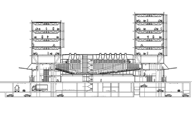 El edificio, situado en Las Tablas, tiene mas de 400.000 m2 e incluye un amplio programa de oficinas, aparcamientos y servicios (restaurante, área deportiva, etc). Se organiza como un bloque lineal de directriz curva y altura variable que aloja los elementos comunes en las plantas bajas y las oficinas en las superiores, con una panta técnica y una calle peatonal elevada que separa ambas áreas. El edificio tiene un fondo de 18 m, diáfano, con núcleos de comunicación vertical cada 50 m.
