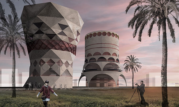 Dos monolitos, algo misteriosos, enlazarán la nueva ciudad con su historia al tiempo que se suman a la celebración de la Naturaleza. Los dos edificios surgen como monolitos, casi templos modernos, formando un conjunto que se inspira en los recintos públicos de aquellas arquitecturas históricas en las que la ley dominante es el juego de volúmenes bajo la luz.