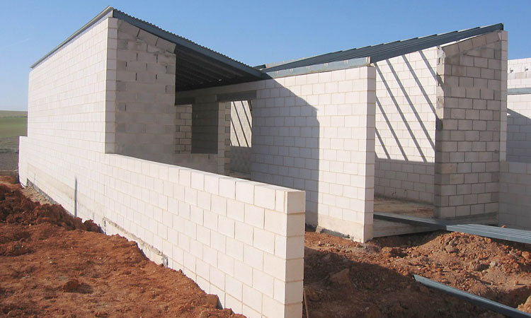 La elección por la racionalización de la construcción mural es nuestra solución a la vivienda en un paisaje extremo como es La Mancha. El sistema constructivo es a base de muros paralelos de bloques de hormigón, placas alveolares y viguetas de acero vistas, éstas en cubierta, siguiendo el conjunto la modulación marcada por el bloque.