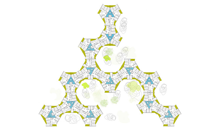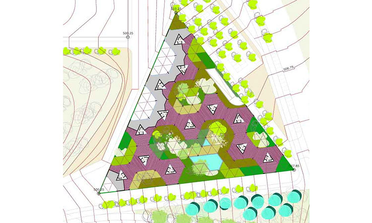 La parcela triangular permitía una solución alternativa a la manzana, con agrupaciones de tres o más viviendas por núcleo, huyendo de ese urbanismo oficial de grandes avenidas y patios para ofrecer una ordenación ajardinada, abierta, impecablemente orientada.